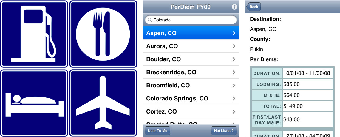 Initially I didn’t really have much of an idea about what I was going to build. The first actual product I built was a Tip Calculator; not original nor particularly interesting, but it got me proficient on the platform. That summer, while my family and I were on vacation at the beach, I had the idea to build a Per Diem reference app. Over the course of several afternoons sitting in our rented beach house’s dining room, I put together the main structure of what would become my first app.